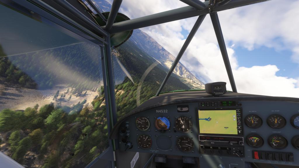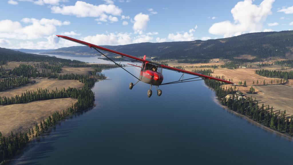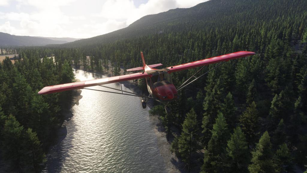 With just 100 horsepower on tap, this is not the most powerful bushplane. It can get up and off the ground quickly, but you do still have to work with it a bit to get altitude. That’s lead to a fair hairy moments where I thought I wasn’t going to clear the trees ahead of me. On the other hand, this is a sim, so that makes for more entertaining flying!