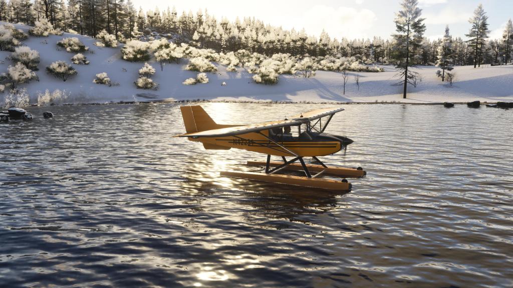 It also has really good handling on water with a water rudder and pontoons. The physics here are enjoyable and its fun to just land it and sit on the water.